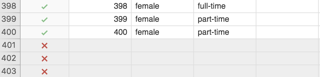 So what’s actually going on? Open up employment.csv in a simple word processor and scroll down to the end of the file. There you will see that there are 91 rows of commas without values, like this: